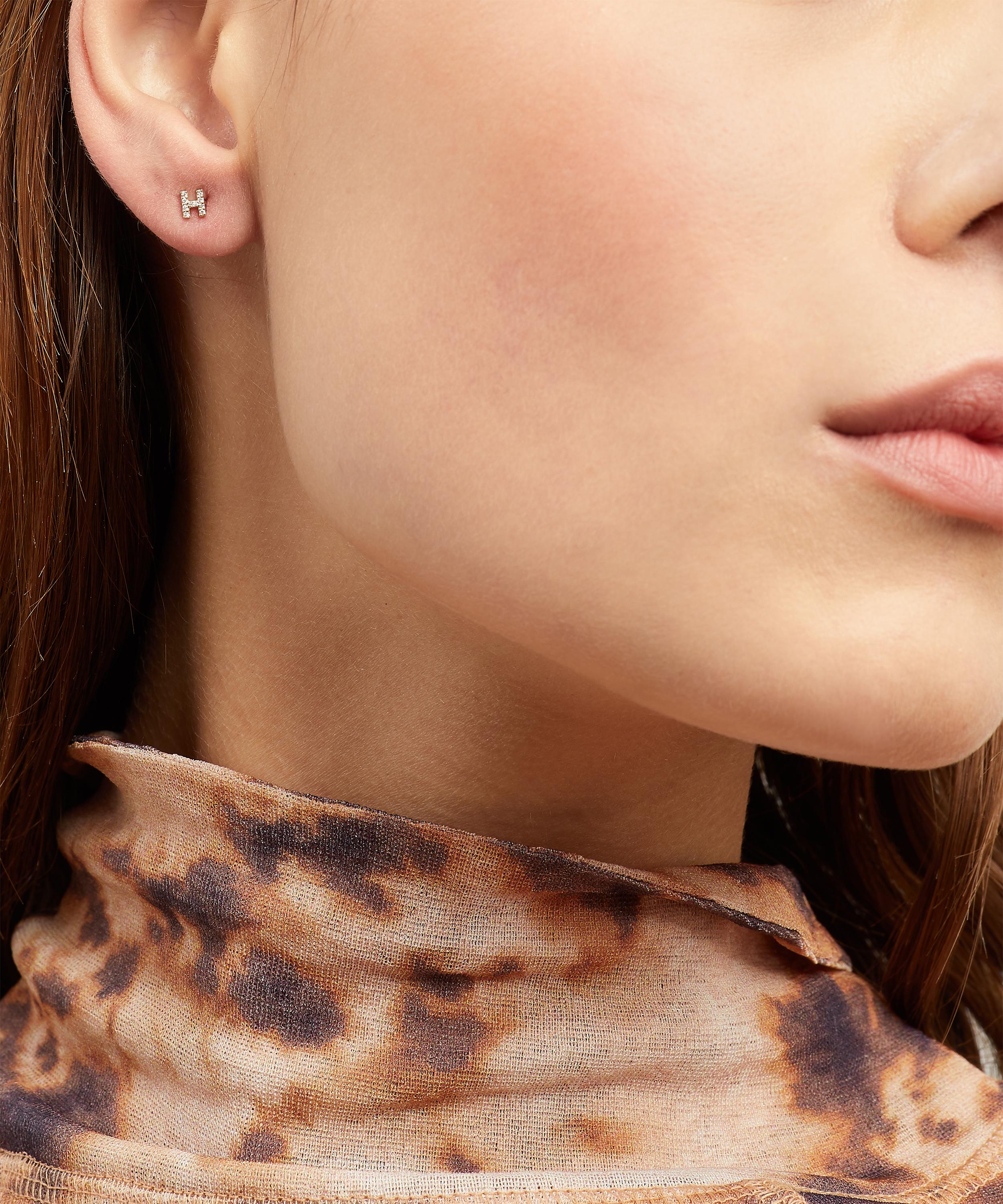 Natalia drake 925 sterling silver diamond stud earrings alphabet letter initial earrings.